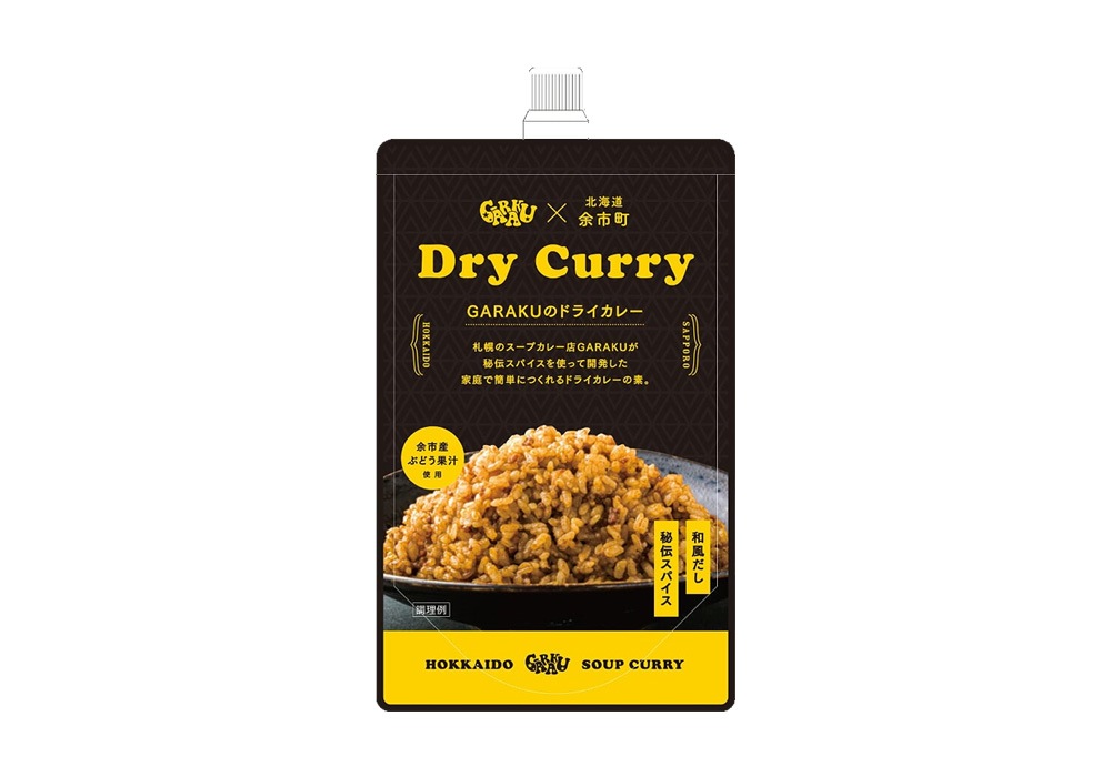 GARAKUの特徴でもある清涼感のあるハーブ系スパイスに加え、余市産のブドウ果汁を配合しておりエスニックな香り高い本格ドライカレーとなっております。