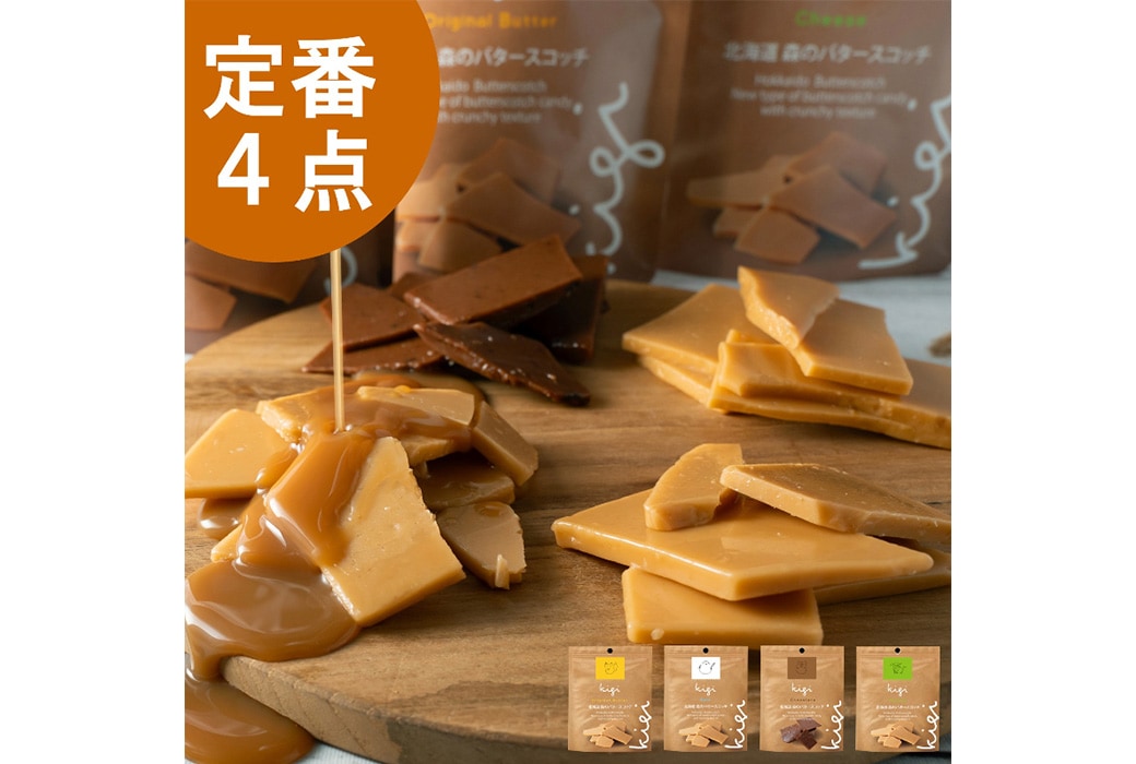 | 内容量 | 各40g ・オリジナルバター ×1 ・オホーツクの塩 ×1 ・チョコレート ×1 ・チーズ ×1 |