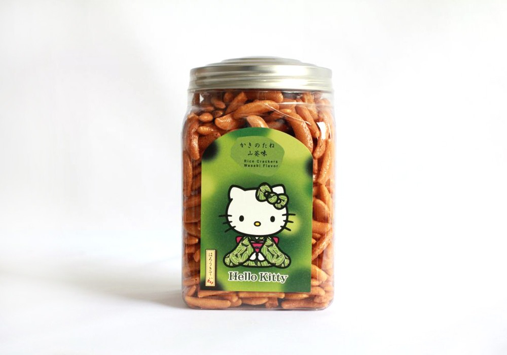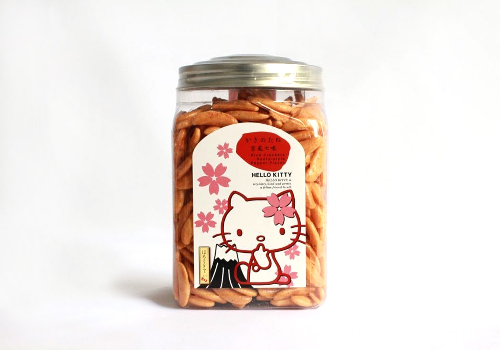 珍味メーカーが作ったこだわりの柿の種をかわいいキティちゃんポットにいれました。「わさび」と「山椒のきいた京風七味」でおいしい柿の種に仕上げています。小腹がすいた時、お酒を飲む時、ひと息つく時のお供にしてください。