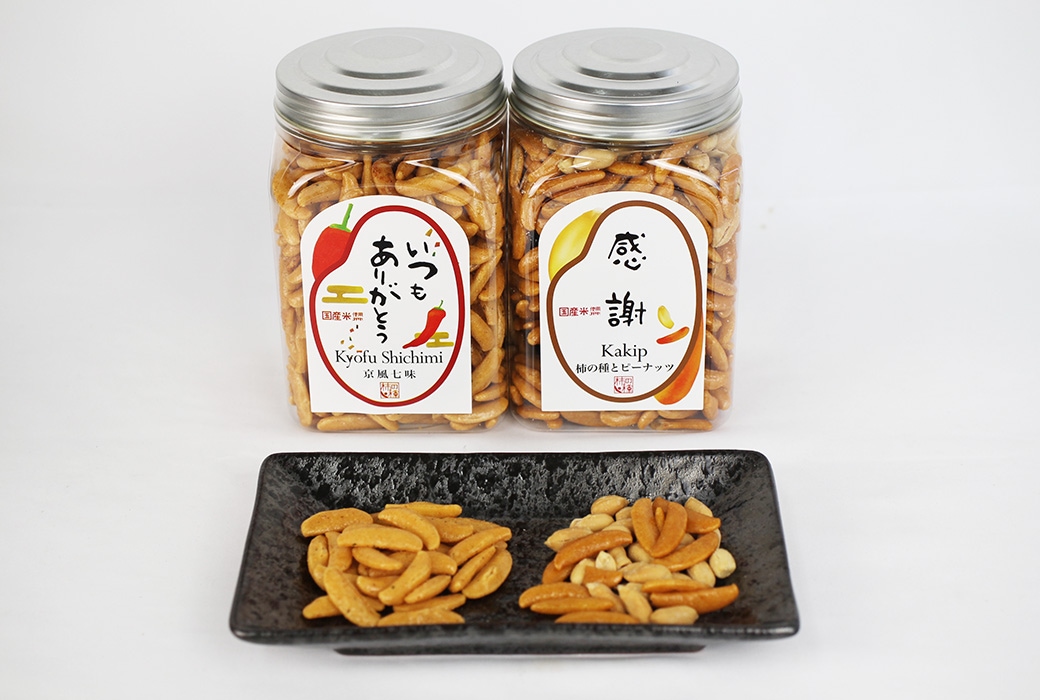 感謝ポット2個セット(醤油味柿の種と千葉産ピーナッツ&京風七味柿の種)